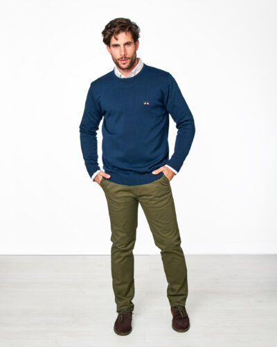 Jersey de punto con cuello redondo azul marino – Spagnolo