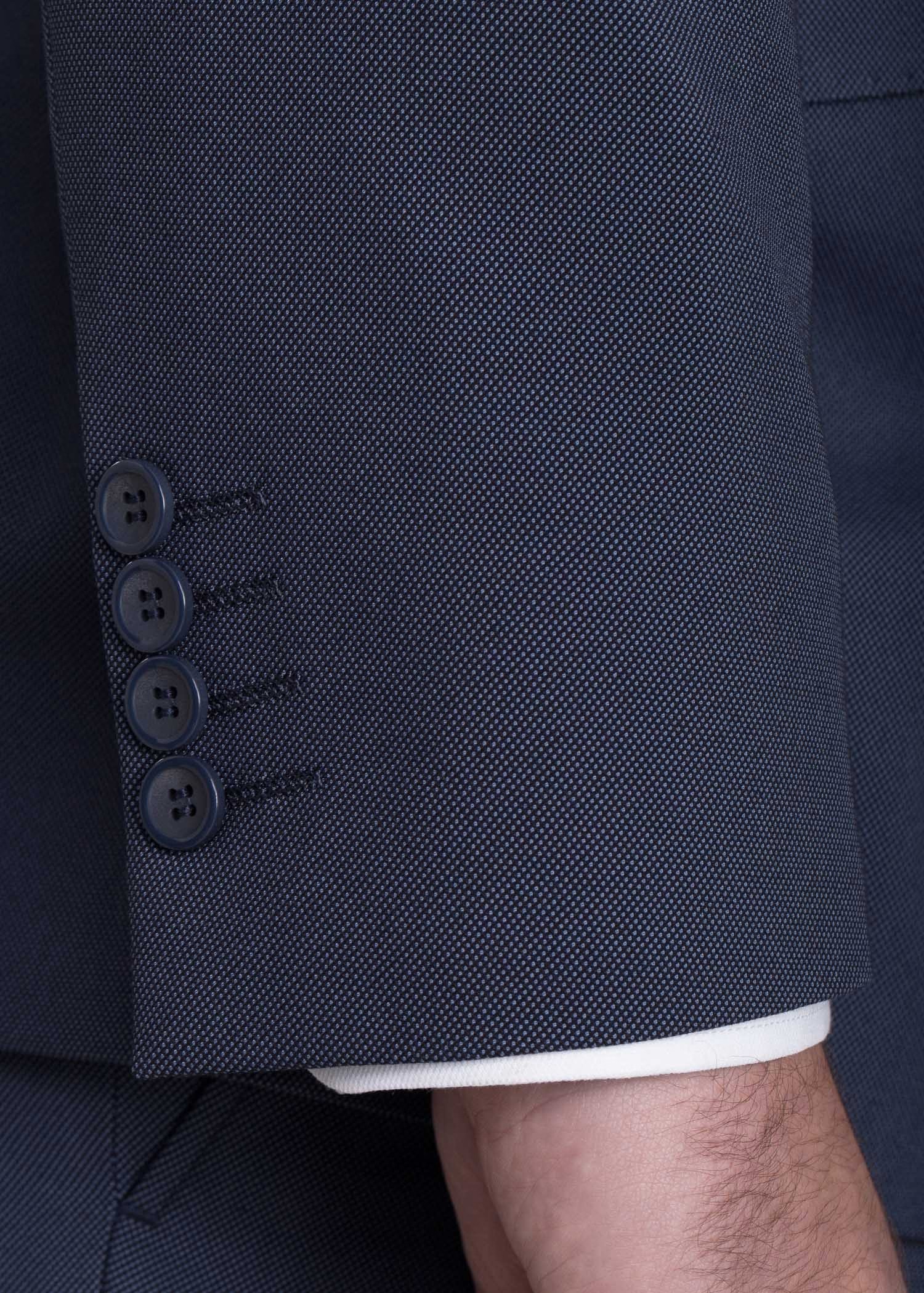 Confeccionado en drop 4, este traje se adapta a cuerpos más amplios con un patrón exclusivo: la americana se ajusta en hombros y espalda con una o dos tallas menos, logrando una caída impecable. El pantalón de tiro alto, bajo 19 y cintura elástica asegura confort y libertad de movimiento durante todo el día, mientras que el largo de americana de 74 cm aporta equilibrio y elegancia a la silueta.