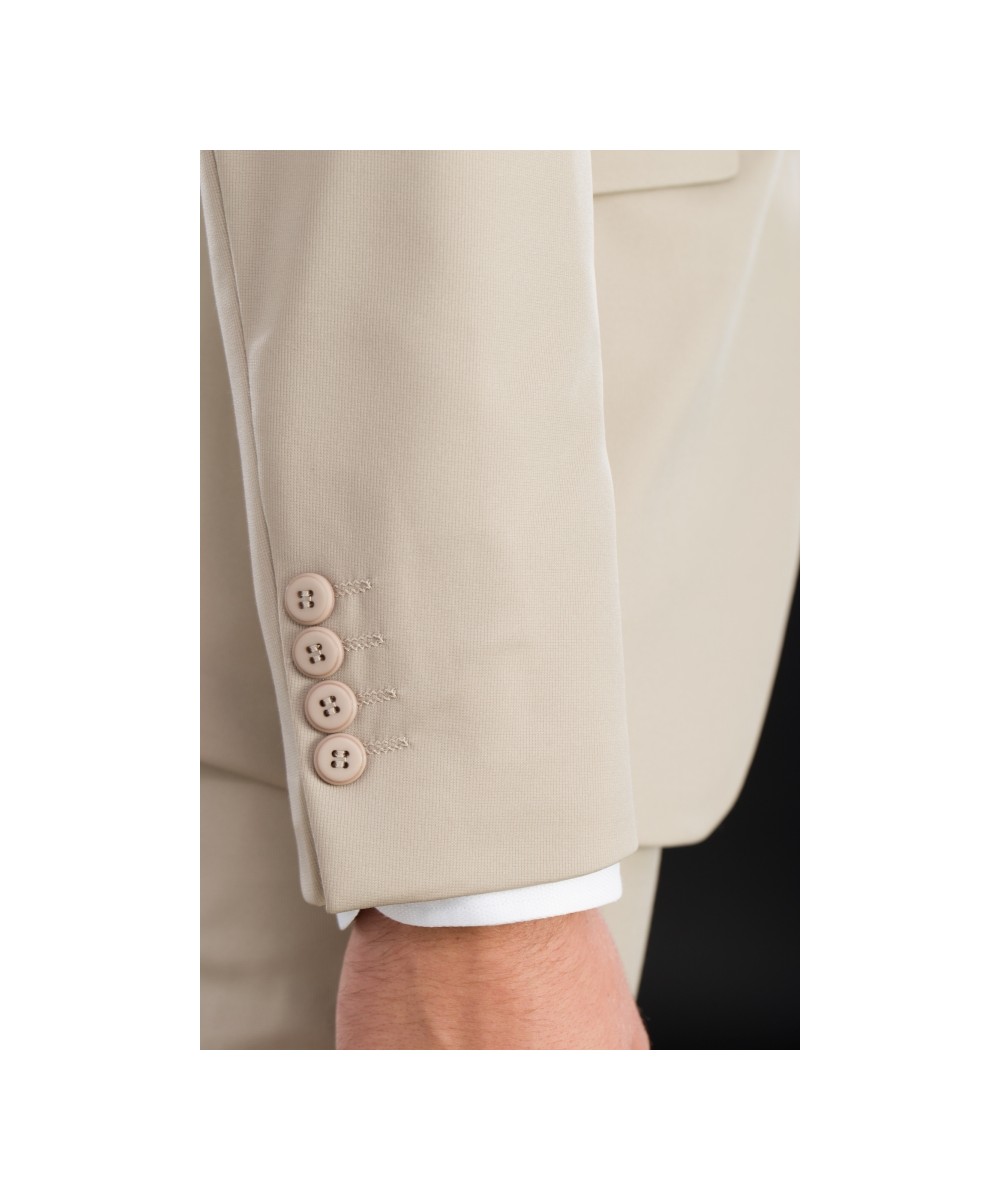 Traje de corte SUPER SLIM FIT, solapa picada al canto, dos pinzas en el delantero, su pantalón es de tiro corto con cinturilla elástica adaptable y bajo de 17, el largo de la americana es 72.