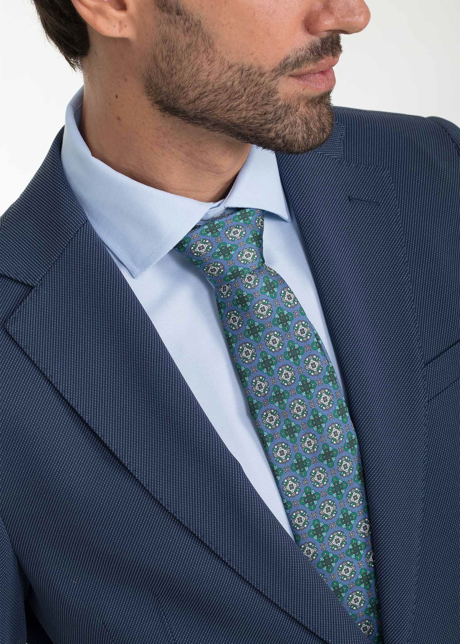 Un traje de hombre de color azul y corte slim fit es una prenda que combina elegancia y modernidad. Un clásico renovado. El azul es un tono elegante y sofisticado que conserva la elegancia.