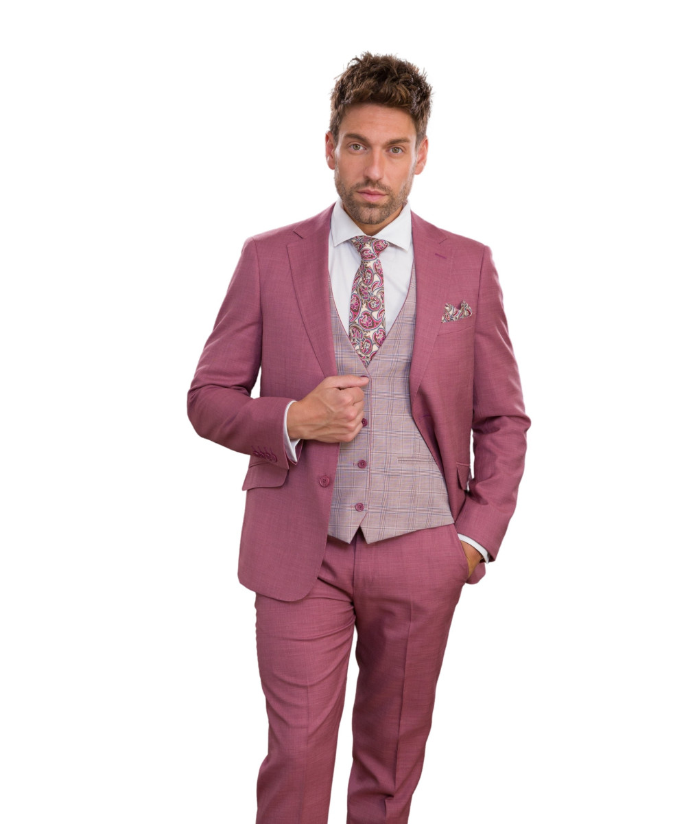 Lino Clemente – Traje con chaleco reversile rosa ZAR-CH 24125