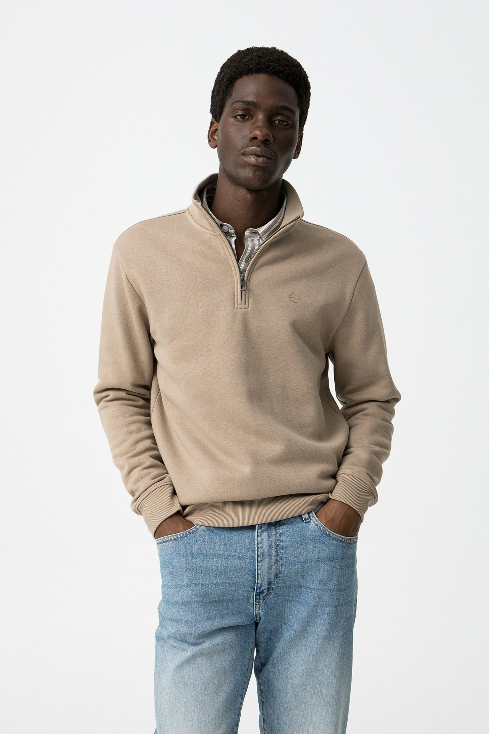 La sudadera beige básica con cremallera para hombre es la opción perfecta para quienes buscan comodidad, estilo relajado y un toque moderno en su vestuario. Con su diseño, esta sudadera se convierte en una pieza clave para un look urbano y casual, manteniendo un toque de sofisticación.